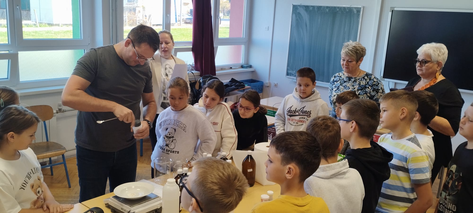 Danas, 28. listopada 2025. godine, Suzana i njezin suprug došli su u goste u školu. Donijeli su pune kutije s raznim tekućinama, prahovima, pastama, eteričnim uljima, hidrolatima i šljokicama. Bilo je tu miksera, žlica, menzura, plastičnih posuda za miksanje, kutijica i bočica. Tu je bila i stara vaga, koja bi sama mogla ispričati koliko je već izvagala, ali još uvijek točno važe. Učenici su mogli vidjeti i mirisati sušeni cvijet smilja i lavande.