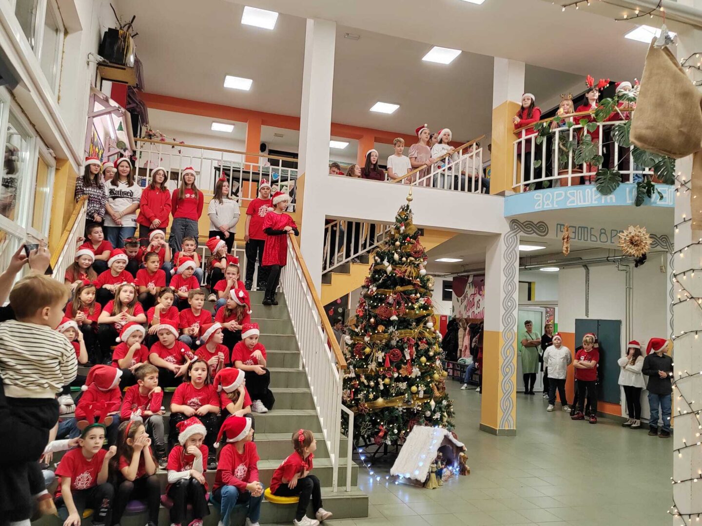 U nastavku priredbe, izvedena je pjesma „Zdravo budi mladi kralju“, koja je podsjetila sve prisutne na pravu božićnu poruku mira, ljubavi i radosti. Dramska skupina, pod vodstvom učiteljice Danijele Bonković, izvela je igrokaz „Dobrodošlica Božiću“, naglašavajući važnost zajedništva i ljubavi tijekom božićnog vremena.