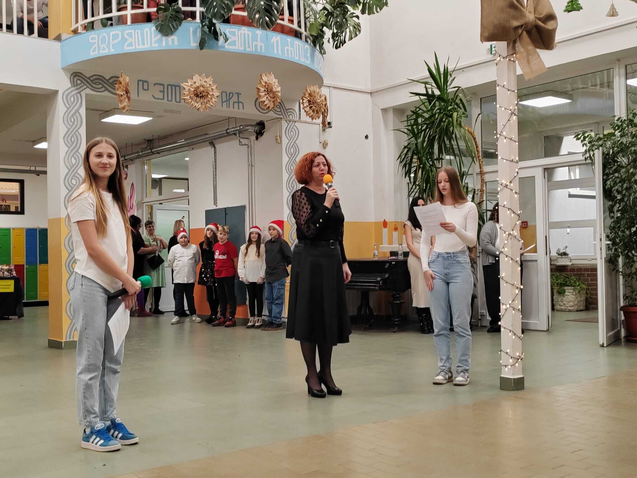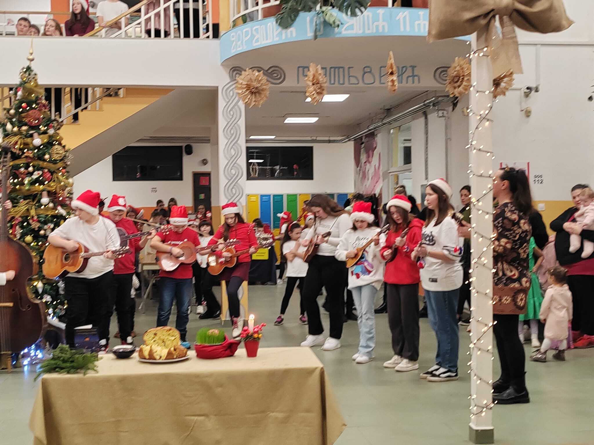 Učenici 2. a i 2. b razreda, uz pomoć svojih učiteljica Josipe Šajnović i Mateje Gavranović Vujić, izveli su pjesmu „Ide zima“, a nakon njih je zbor, uz pratnju tamburaša, izveo pjesmu „Radujte se narodi“.