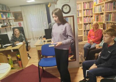 Danas je u Gradskoj knjižnici i čitaonici Petrinja održano Gradsko natjecanje u čitanju naglas. U mlađoj kategoriji našu školu su predstavljale učenice Lorena Dolenac (3.b) i Lucija Požega (5.a), a u starijoj kategoriji učenici Ivano Vidović (7.a) i Petra Borić (8.b). Učenici su na natjecanje došli u pratnji svojih učiteljica Liljane Sigur, Danijele Bonković i Matee Boškić, knjižničarke Tatjane Vrbanac Kezele te ravnateljice Ankice Krnjajić Magdić koja je svima došla pružiti podršku. Sve prijavljene pažljivo su poslušale profesorica Božica Vuić i logopedinja Martina Boltužić Dževerlija. Naglasile su da im je bilo zaista teško odabrati najbolje učenike, osobito zato što je ove godine bio velik broj prijavljenih učenika. Grad Petrinju će tako na županijskom natjecanju u čitanju naglas predstavljati Julija Gabrić iz Prve osnovne škole u mlađoj kategoriji, dok će u starijoj kategoriji Petrinju predstavljati naš učenik Ivano Vidović.