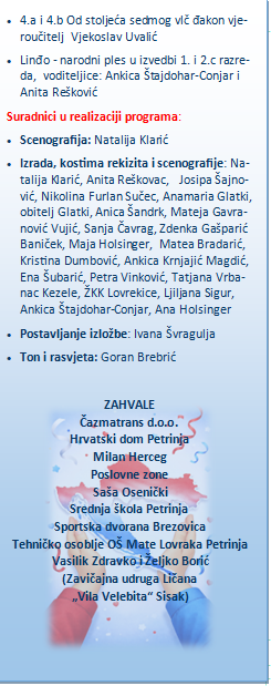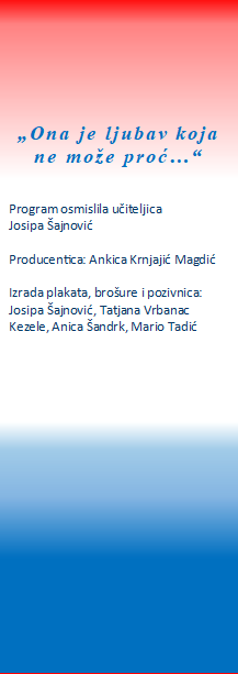 Kulturno-umjetnički program pod nazivom „Ona je ljubav koja ne može proć´“ osmislila je učiteljica Josipa Šajnović, a u programu je sudjelovalo oko 150 učenika.