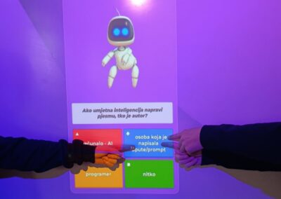 Učenici 8. b razreda raspravljali su o aktualnoj temi umjetne inteligencije i etičnosti njezine uporabe. Podijeljeni u skupine, kroz Kahoot kviz upoznali su se s pojmovima CC licenci, autorskog djela i izvođača.